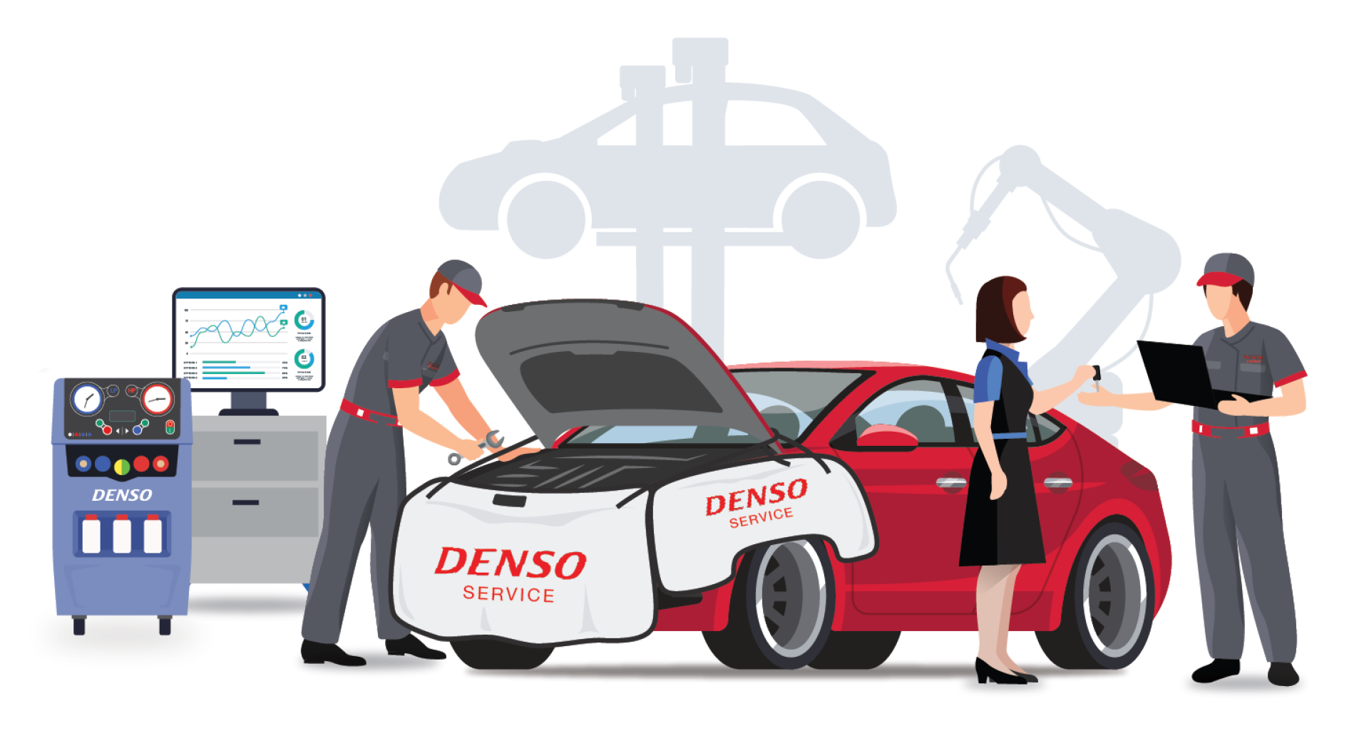 For this reason, DENSO has entered the aftermarket sector by establishing certified service dealer offering the following services: