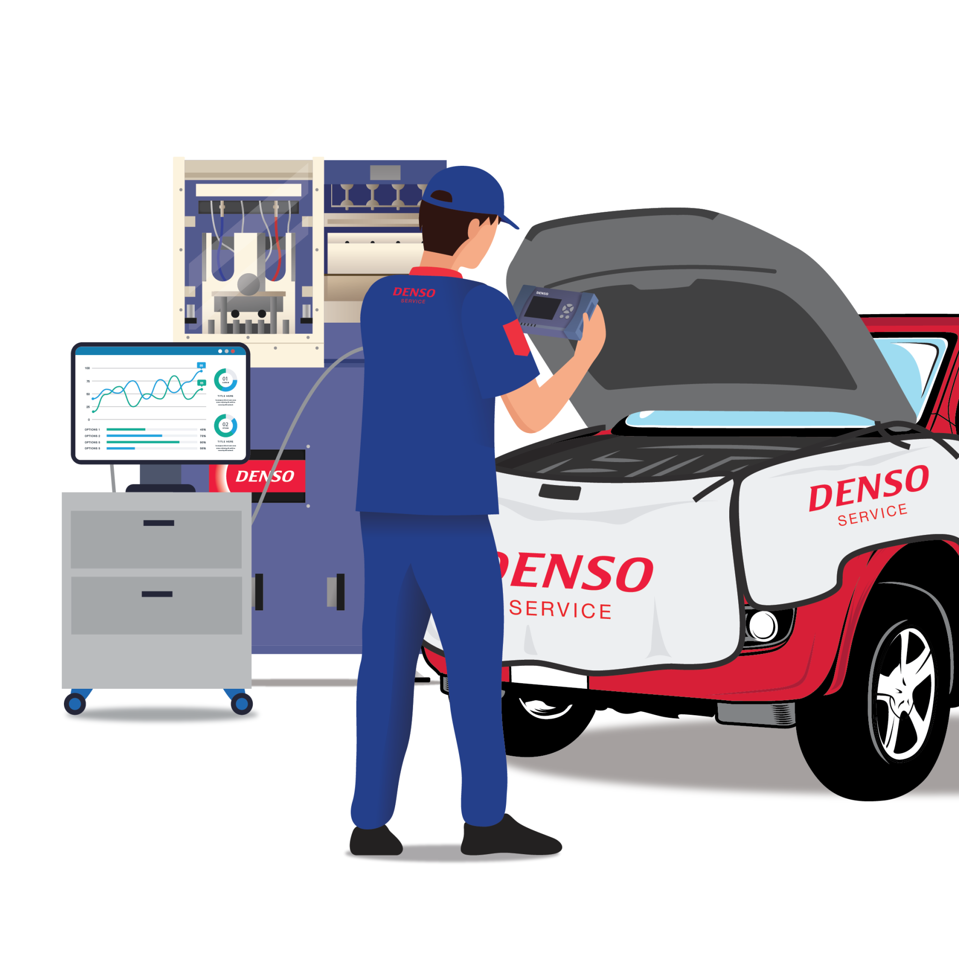 โดยเมื่อท่านนำรถเข้ามาที่ศูนย์บริการ DENSO ทางเราจะดำเนินการต่างๆ ดังนี้